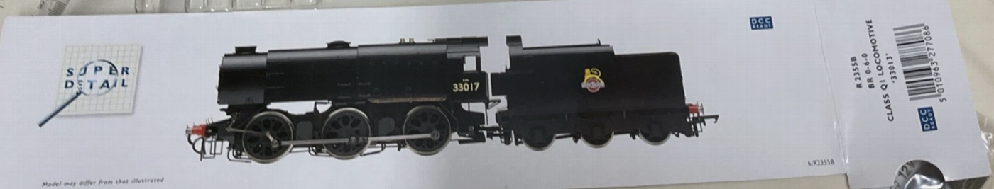 The Hornby OO R2355B Q1 (33011 BR Black Late Crest) is a 1:76 scale, DCC-ready steam locomotive with a weathered black finish. Featuring a 0-6-0 wheel configuration and analogue control, it’s a detailed, ready-to-run model ideal for collectors and railway enthusiasts.